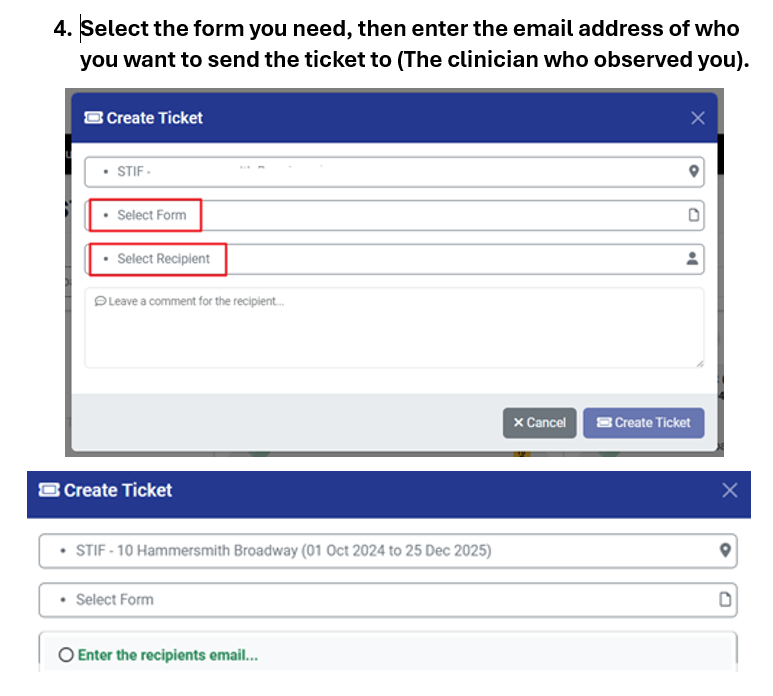 You can send a ticket to anyone who you are asking to complete an assessment (for individual assessments it doesn’t have to be your registered trainer). This person does not have to be registered as a trainer on the system; all you need is their e-mail address. You do NOT need to send any tickets to your Principal/Registered Trainer. They have full access to all your assessment forms.